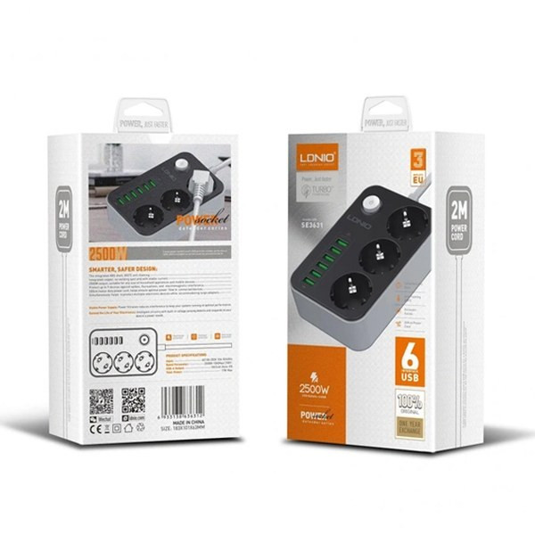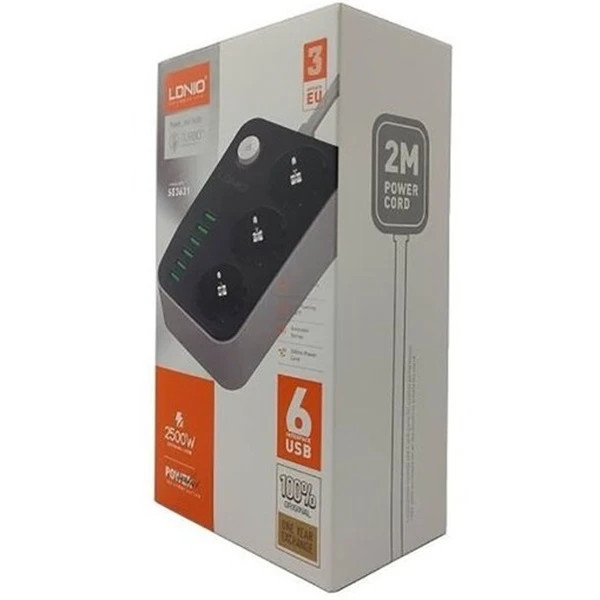 این محافظ Ldnio دارای 3 پریز برق و 6 پورت USB که ارائه دهنده برق و شارژ گوشی، تبلت، پاوربانک و غیره و همچنین محافظ ایمنی برای کامپیوتر، تلویزیون، وسایل الکترونیکی، سیستم های سرگرمی خانگی و غیره است. این چندراهی در برابر سرما و گرما مقاومت بسیار بالایی دارد به طوریکه دردمای بالا تغییر شکل آن تغییر نمی کند.
