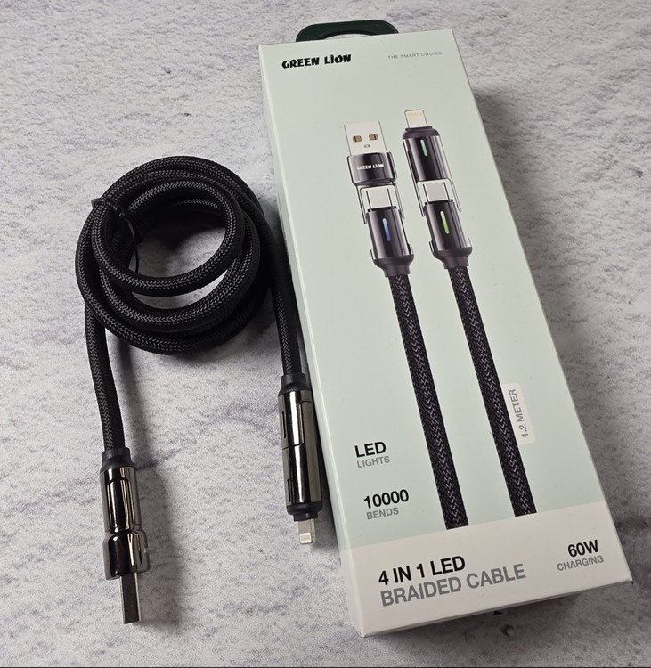کابل شارژ بسیار با کیفیت از برند معتبر گیرین لاین یک کابل شارژ اناقال دیتا میباشد که همزمان با تبدیل های حرفه ای و مطمئن خود کار چهار کابل را انجام میدهد،همچنین بافت بسار محکم و قطور این محصول با کیفیت مهر تاییدی بر استفاده ی طولانی مدت آن است